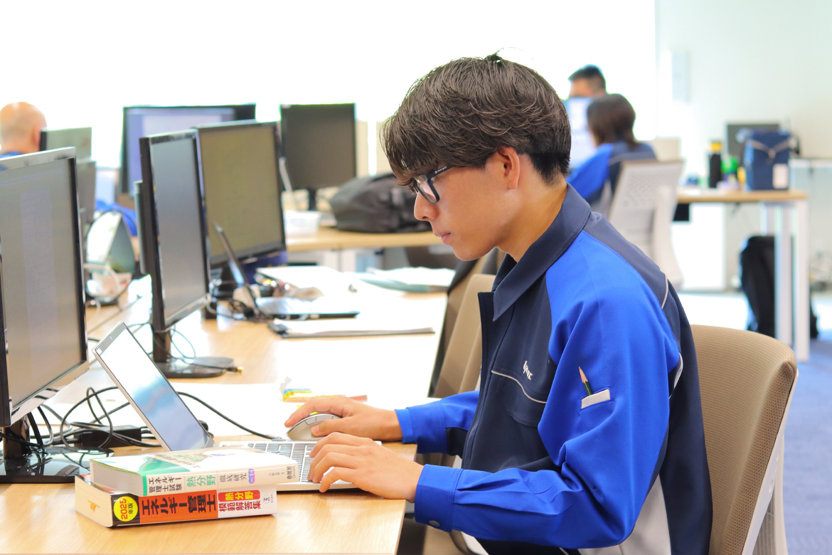 入社1年目はエナジーソリューション 製造課で研修を受け、2年目から設計課へ配属となりました。