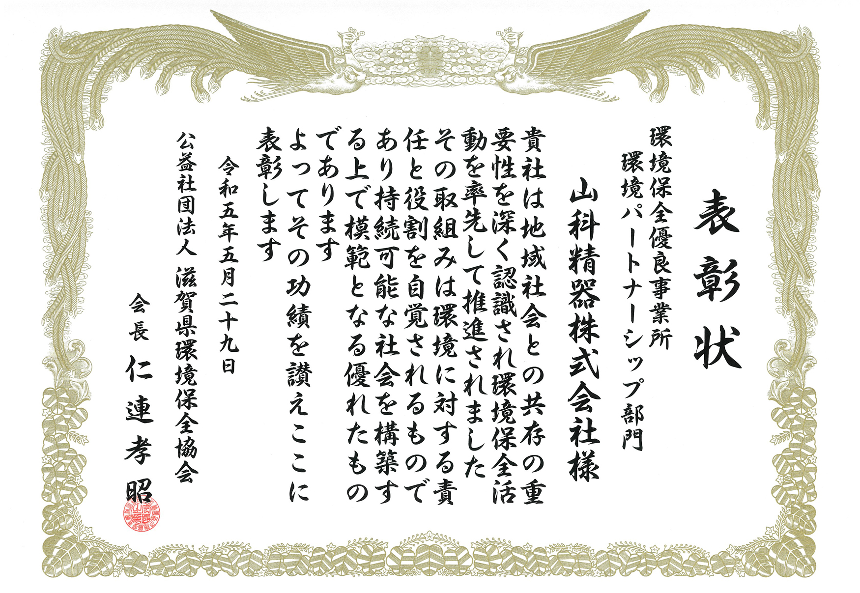 滋賀県環境保全協会長表彰の環境パートナーシップ部門において、